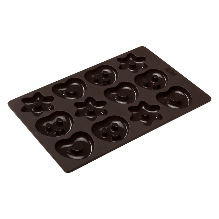 To bake the mini gingerbread cookies, I used a silicone mould like the one shown in the photo (by Lurch), but you can use any mould or cutter suitable for thicker gingerbread cookies in various shapes.