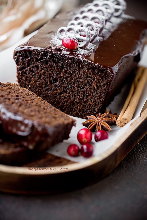 Spicy, dark, aromatic, soft and slightly sticky – a bold molasses gingerbread with a peppery kick. Quick to make, yet full of depth. Its deep colour, flavour and aroma all come from molasses – so it’s worth noting, you really have to enjoy it, as it defines the cake. Finished with a glossy chocolate ganache and decorated with fresh cranberries, it may look modest… but it definitely has a bit of an edge ;).