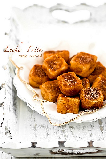 Popularny hiszpański deser, jeden z tych, które się albo kocha, albo nie cierpi ;-). Nazwa 'smażone mleko’ wzięła się od składników deseru; jest to usmażony, słodki, mleczny pudding w chrupiącej panierce. Pachnący wanilią i cynamonem. Deser jest prosty w wykonaniu i z pewnością nie drogi. Mi najbardziej smakuje ciepły, choć bardzo smaczny jest również na zimno. Dzieciom z wyglądu przypominał nuggetsy z kurczaczka ;-). Leche frita jest często podawane w okresie Wielkanocy. Warto spróbować, czy i Wam posmakuje :-).