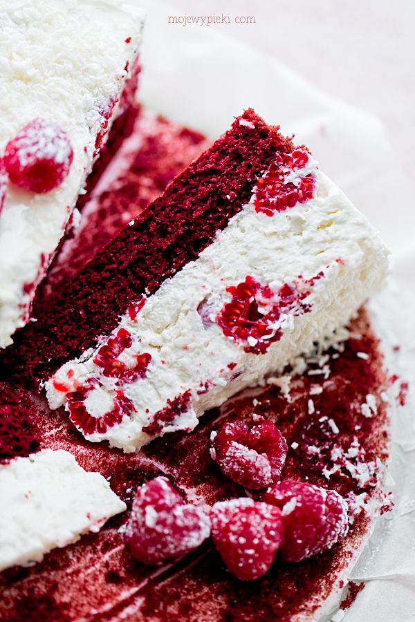 Malina i kokos – rewelacyjny kokosowy deser z malinami na biszkopcie red velvet. Lekko, smacznie, elegancko :). Doskonały na zakończenie letniego obiadu lub na podwieczorek. Najpierw pieczemy czerwony biszkopt, a potem na wierzch wykładamy kokosową masę serową z dodatkiem malin. Idealnie jest odstawić całość na noc do lodówki by torcik stężał. Pycha!