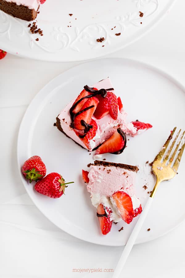 Sernik z truskawkami i czekoladą jest idealny na upały. Słodko – orzeźwiający, delikatny, piankowy sernik na zimno z Waszych ulubionych owoców :). Zbliżają się naprawdę ciepłe dni, warto mieć w lodówce schłodzony truskawkowy deser, po który każdy chętnie sięgnie. Polecam!