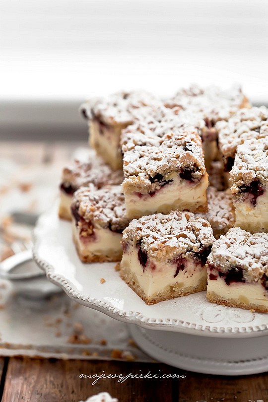Najlepszy śmietanowiec na cieście kruchym z wiśniami jakiego kiedykolwiek jedliście :). Kruche ciasto, dużo wiśni i piankowa masa śmietankowa. Upieczony na kwaśnej śmietanie! Ciasto pierwszego dnia smakuje jak lekka pianka, kolejnego jak najdelikatniejszy sernik na świecie. Ciasto nie ma sobie równych. Co ciekawe, wypiek ten krąży po wielu blogach kulinarnych pod niesamowicie niesprawiedliwą nazwą 'styropian’ – pewnie dlatego do tej pory nie odważyłam się go upiec ;). Polecam i za nadesłanie przepisu bardzo dziękuję Ewie! /przepis zmodyfikowałam/