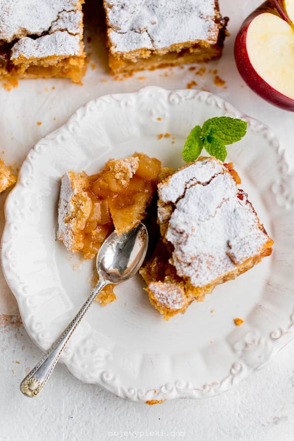 Najlepsza tradycyjna szarlotka domowa. Z prostego przepisu na ciasto, które wykonacie zaledwie w kilka chwil. Bez konieczności wcześniejszego podpiekania spodu. Z pysznym kwaskowym nadzieniem jabłkowym z cynamonem, choć można tu wykorzystać jabłka starte lub uprażone wcześniej do słoiczków na zimę. Szarlotka domowa jest pyszna jeszcze ciepła, podana z lodami waniliowymi, choć bardziej stabilna po całkowitym wystudzeniu. Być może poznajecie ten przepis na ciasto – jest Wam znane z ciasta ze śliwkami, które tak polubiliście :). Polecam!