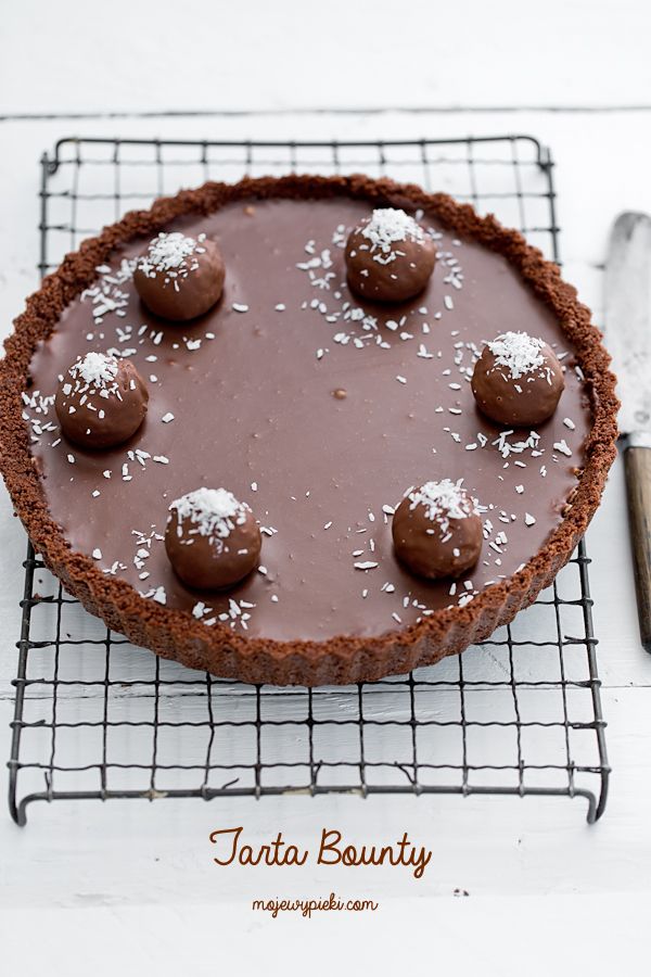 Tarta o smaku batonika Bounty. Ona nie smakuje podobnie. Smakuje dokładnie tak samo ;). Tarta Bounty to kruchy i sypki spód ciasteczkowy (tak, będzie się kruszył podczas krojenia), pyszne nadzienie kokosowe, najlepsza glazura z mlecznej czekolady i dekoracja w postaci domowych pralinek bounty. Deser bez pieczenia – dla fanów słynnych batoników!
