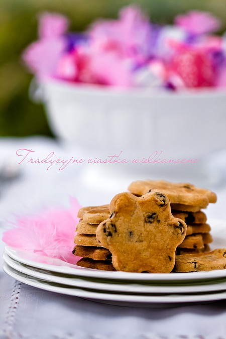 Tradycyjne angielskie ciasteczka wielkanocne są bogate w rodzynki, skórkę pomarańczową i delikatnie pachną przyprawami korzennymi. Miękko – kruche, z cukrową, lekko kruchą skorupką. Podarowane gościom podczas niedzieli wielkanocnej. Polecam!
